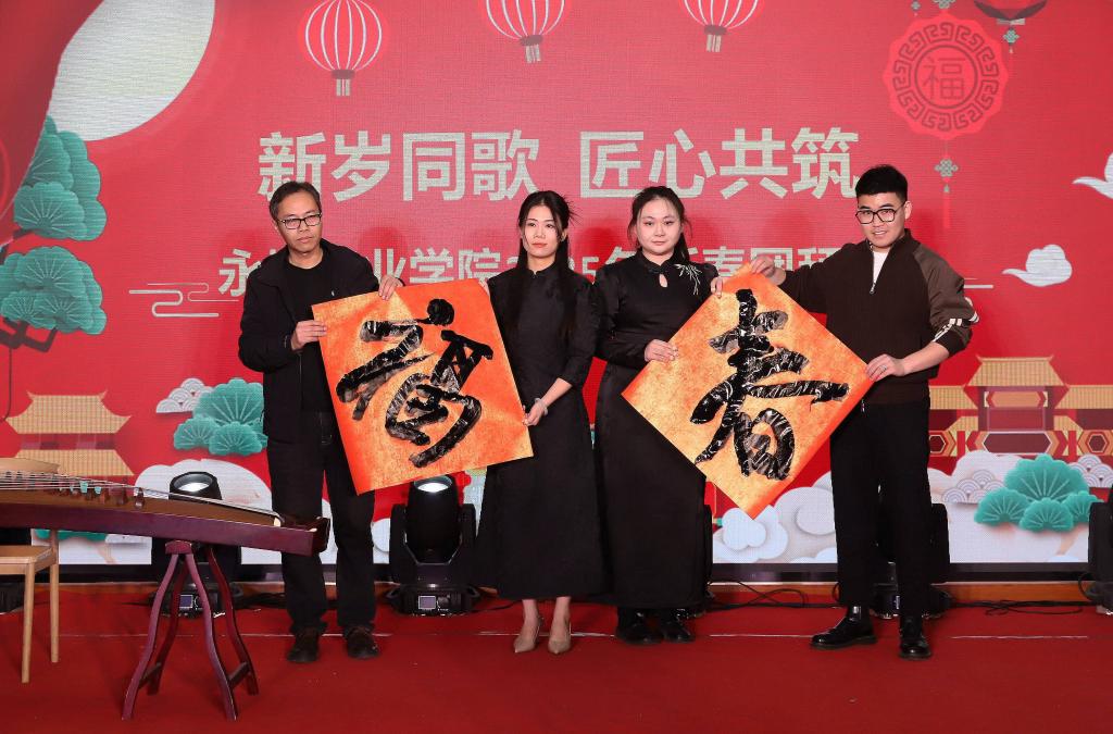 叶长青代表学院向全院教职员工致以新年的问候和衷心的感谢。他表示,2024年是学院深化教育综合改革、奋力推进省级“双高”创建、全面实施“十四五”规划的关键之年。这一年,学院深入学习贯彻党的二十大、二十届三中全会以及全国、全省教育大会精神,全面落实立德树人根本任务,师资力量明显增强,基础设施持续完善,专业设置不断优化,精品课程数量扩容,就业质量稳步提升,治理体系现代化加快推进,全年校园安全“零事故”。这一年我们主动破解高职教育同质化局面,积极打造特色品牌,在商丘市圆满举办“特色永职”主题建设暨校企合作签约会。这些成绩的取得,离不开每一位教职工的辛勤付出和无私奉献。2025年我们要打好“收官战”,谋好“开局篇”,全力“加速跑”。围绕“五大校园”建设整体目标,一行胜千言,撸起袖子加油干;以时不我待、只争朝夕的使命感和紧迫感,推动“特色永职”在新征程中破浪前行,铸就永职发展史上的新辉煌。