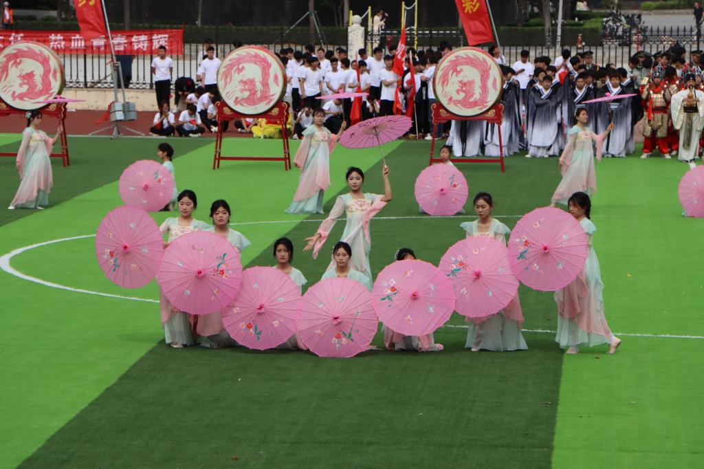 中国鼓表演震撼人心。鼓手们用手中的鼓槌,敲击出中华民族的心跳,奏响时代的最强音。这表演,是一场视听盛宴,是永职学子对传统文化的致敬与创新传承,更展现出全体永职人坚持以“不争第一、就创惟一”的精神,坚定信心,迎难而上,推进学院形成特色名片,走出一条特色发展之路,努力成为引领职业教育改革与发展的一面鲜明旗帜的坚强决心。